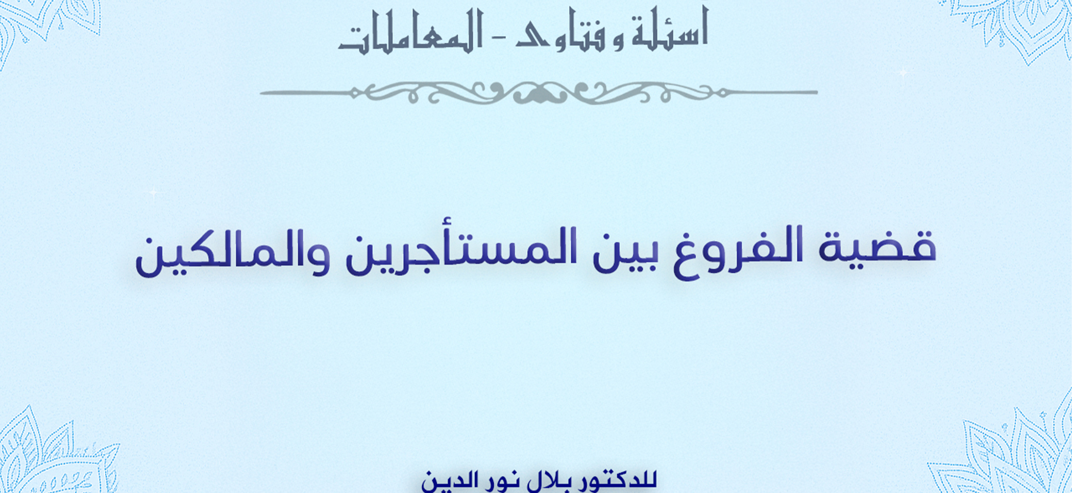 | وقلت سابقاً كل قضيةٍ منها تحتاج إلى نظر، لمَن دفعت؟ ومَن أخذ؟ والذي قبلَك ممن أخذ؟ والمالِك عندما أعطى المحل كيف أعطاه؟ والاسم التجاري هل فعلاً أصبح هناك اسمٌ تجاري، والبيوت شيء والمحلات شيءٌ آخر، فالقضية شائكة جداً، وحتى الآن فيما أعلم حسب ما سمعت ومَن التقيت، لا يوجد عند الدولة تصوُّرٌ حتى الآن لحلّ هذا الإشكال، بين المالِك وصاحب الفروغ. |