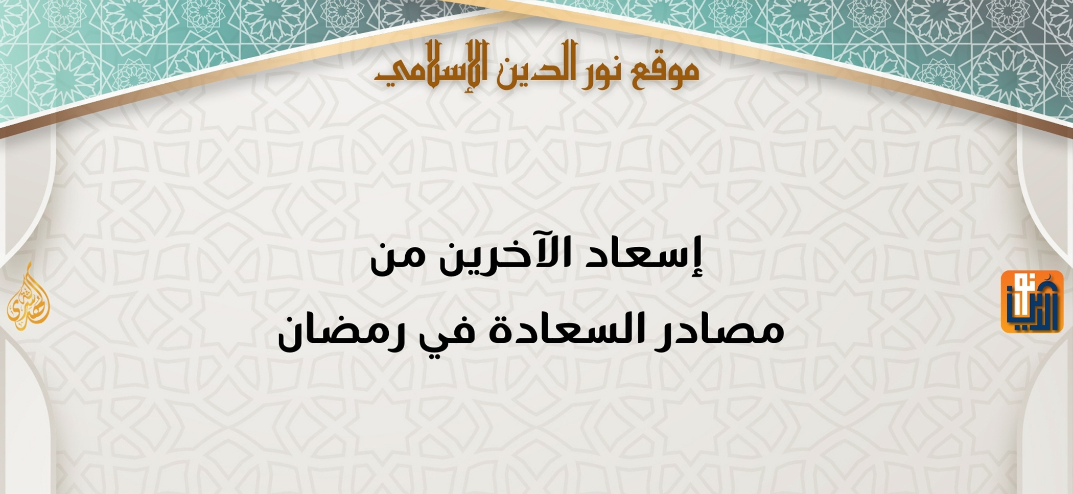أيها الكرام؛ ومما ينبغي لفت النظر إليه أيضا أننا نسعد في رمضان لأن كثيراً منا ولله الحمد، وكل إنسان قادر على ذلك، يدخل السعادة إلى الآخرين، فالسعادة تعني أن تسعد الآخرين، قيل: من أسعدُ الناس؟ قال: من أسعدَ الناس، وإذا أردت أن تسعَد فأسعِد الآخرين، فما أعظم السعادة التي تدخل على قلب المؤمن حينما يدفع زكاة ماله في رمضان، أو حينما يدفع صدقته في رمضان وخارج رمضان، ما أعظم السعادة التي تملأ جوارحه عندما يرى أثر الصدقة في نفوس الفقراء وهم يلهجون له بالدعاء أن يحفظه الله، ويحفظ له أهله، وأن يدخله الجنة، هذا مصدرٌ أيضاً من مصادر السعادة أن تُسعِدَ الآخرين.