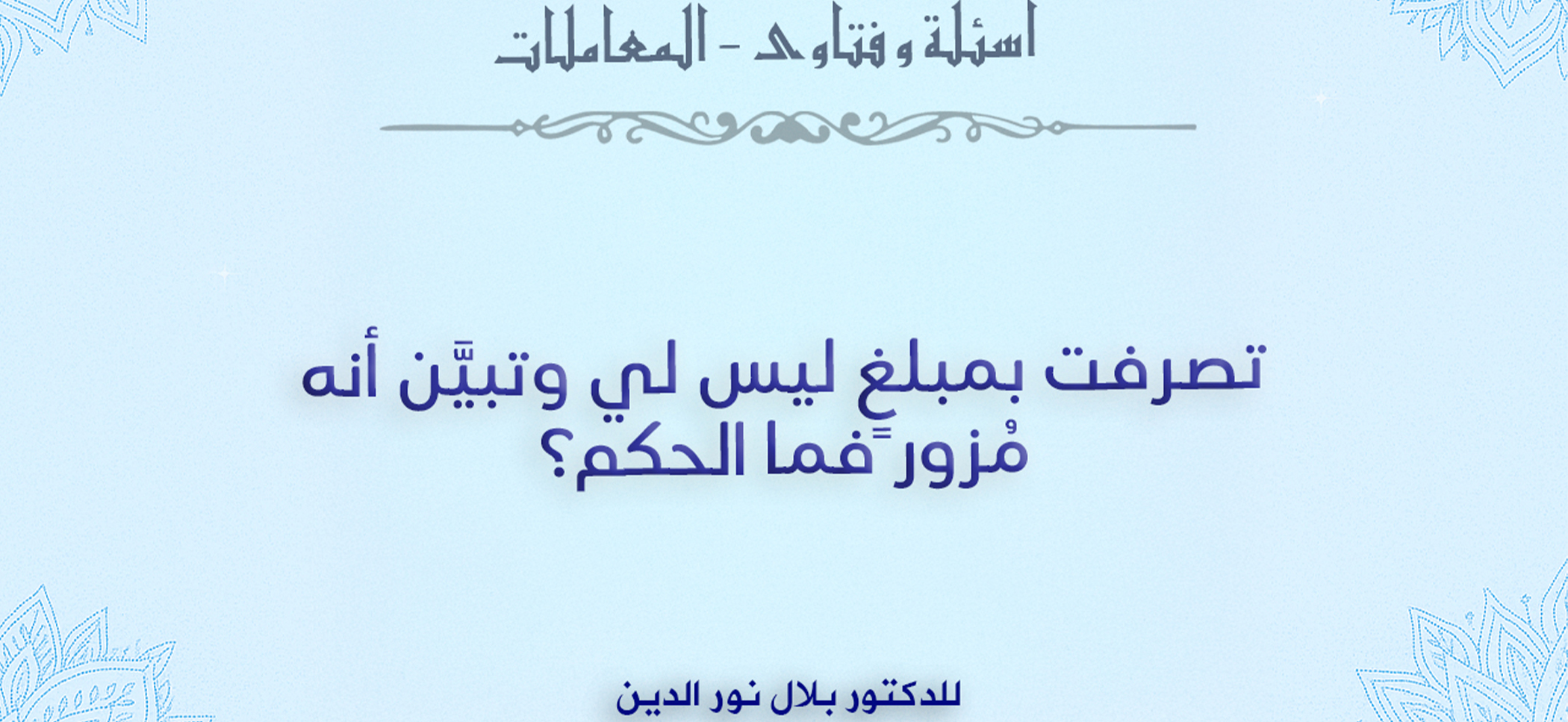 ما دمت أخذتها وإذا كان والدك متأكداً أنها مُزوَّرة، الآن أنت غششت بها صاحب المحل، فاذهب إليه وافتح معه الموضوع، قل له أنا أعطيتك مئة ثم تبيَّن أنها مُزوَّرة وأنا جاهزٌ للتعويض، فالمبلغ الذي أخذته منّي أُعوضك به وأردُّه لك، أو إذا اكتشفت أنها مُزوَّرة فاعطنِ إيّاها حتى نُتلفها أو إلى آخره، يعني لا بُدَّ أن تُصلِح لأنَّ هذا ليس عدلاً، لا يجوز أن نُحمِّل هذا البقَّال مسؤولية مئة مُزوَّرة ونحن نعلم أنها مُزوَّرة، فإذا اكتُشِفت قد تُعرضه للمُساءلة وأقل شيء ستُتلف ولن ينتفع بها، فلعلَّك إذا ذهبت إليه فإمّا أن يُسامح يقول لك أنا لا أعلم ما الذي حصل، عندها تَبرأ ذمتك، أو يقول لك عوضني أنا اكتشفت أنها مُزوَّرة أو عَلِمت أو إلى آخره، فتُعوضه وتَبرأ الذمّة بذلك إن شاء الله.