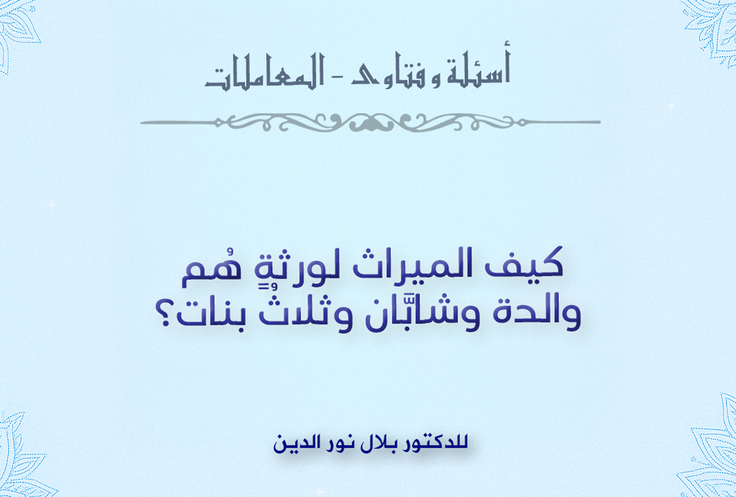 كيف الميراث لورثةٍ هُم والدة وشابَّان وثلاثُ بنات؟