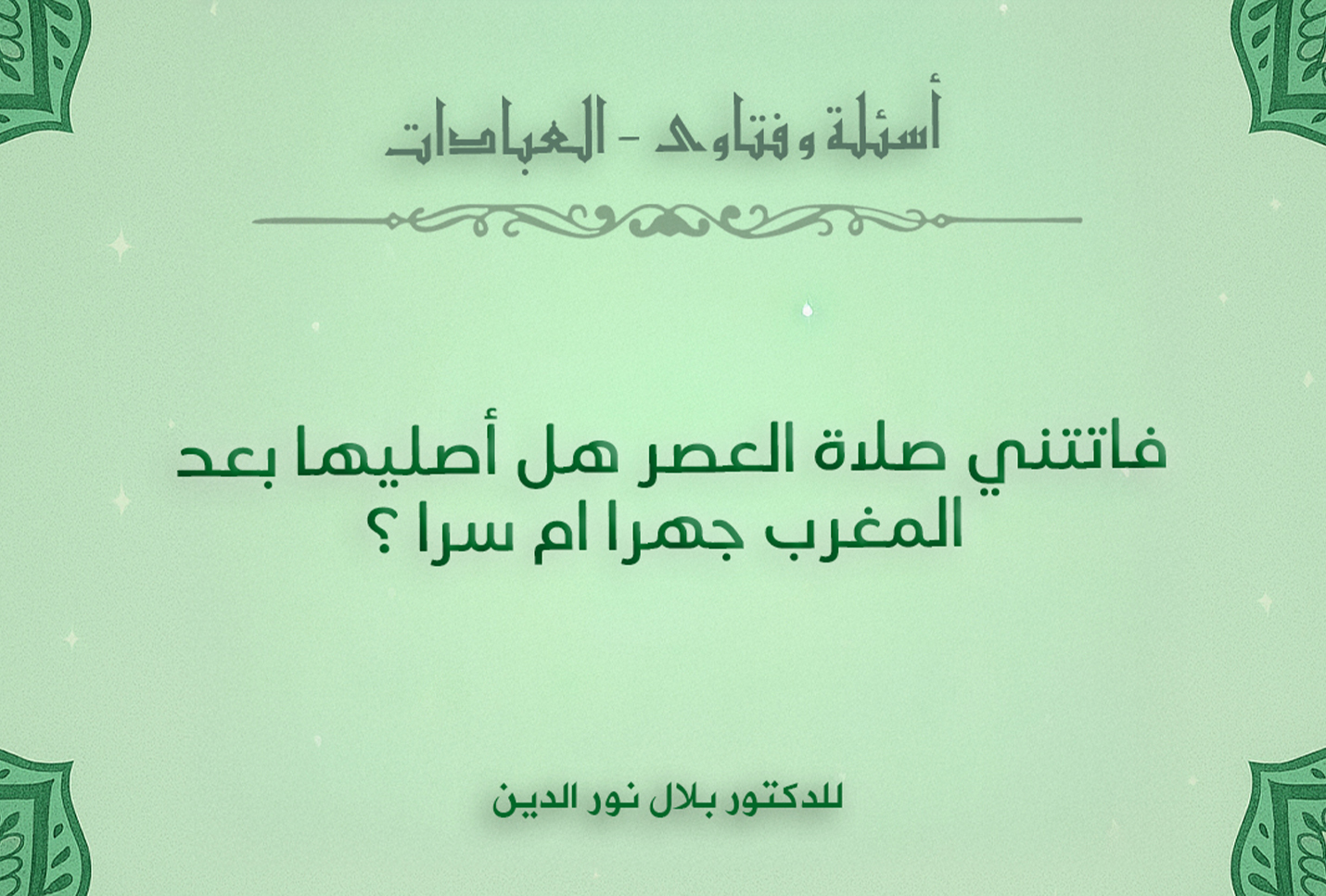 فاتتني صلاة العصر هل أصليها بعد المغرب جهرا ام سرا ؟